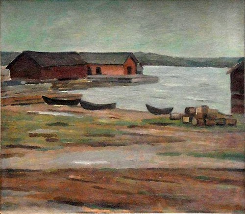 Tästä 30-luvun lopulla otetusta ilmakuvasta käy hyvin ilmi työväentalon ja apteekin sijainti silloisessa kirkonkylän keskustassa. Rantaviiva oli toriaukean kohdilla tuolloin kymmeniä metrejä lännempänä lähes nykyisen Satamatien linjauksen kohdilla. Työväentalo on valkoinen rakennus kuvan keskellä rantaviivalla - apteekki kuvassa sen yläpuolella pihapuiden osittain peittämänä.