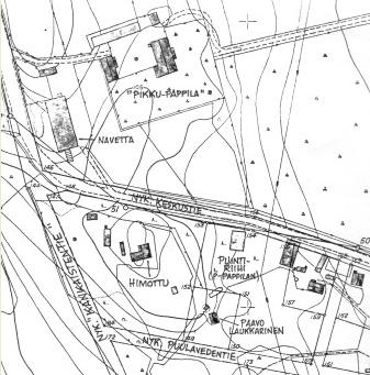Himotun naapurina eteläpuolella oli suutari Paavo Laukkarisen rakennus - itäpuolella naapurina oli pappilan puintiriihi (suunnilleen ent. neuvolan paikalla).