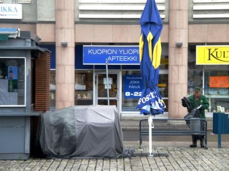 Kuopion torin länsilaidalla sunnuntaiaamun hiljaiseloa - 12.7.2009 (S&J).