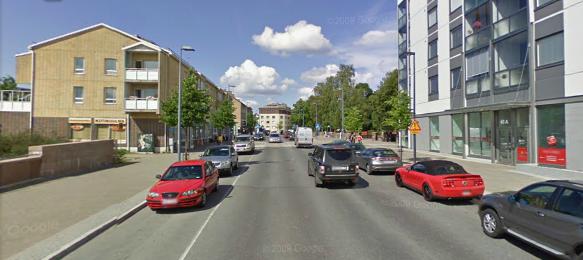 GoogleMapsin kuva (2012) edellisten kuvien maisemasta - Lappeenkatu kulkee Kauppakadun ali (kaide vasemmalla). Karjalan kulma näkyy kaukana Oksasenkadun risteyksessä. Nyt pelataankin autojen ja liike-elämän ehdoilla, kommentoi kuvaparia satunnainen vierailija, mitä väliä sillä on, minkälaisessa maisemassa mieluummin kävelisit.