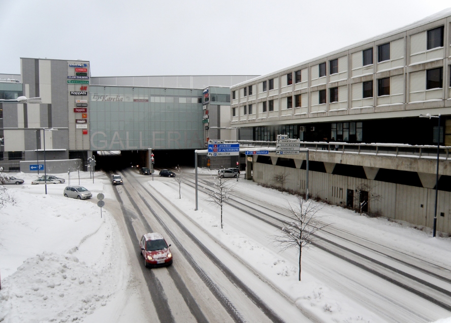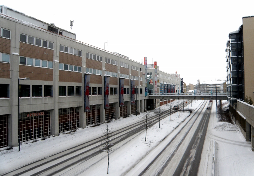 Lappeenrannan kauppakeskusten jatkumossa - ääripäässä mainostaa Anttila. Kuvattu 21.1.2012 (S&J).