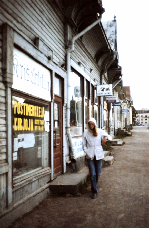 Tämä matkakuva on otettu vuoden 1982 tienoilla (S&J) Lappeenrannan silloiselta idylliseltä Kauppakadulta - antikvariaatti ja Siiri Laineen lastenvaateliike näkyvissä. Taustalla Karjalan kulma.