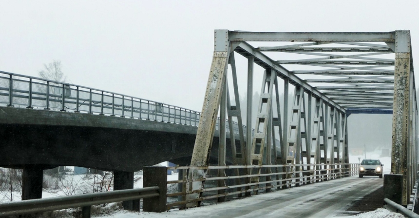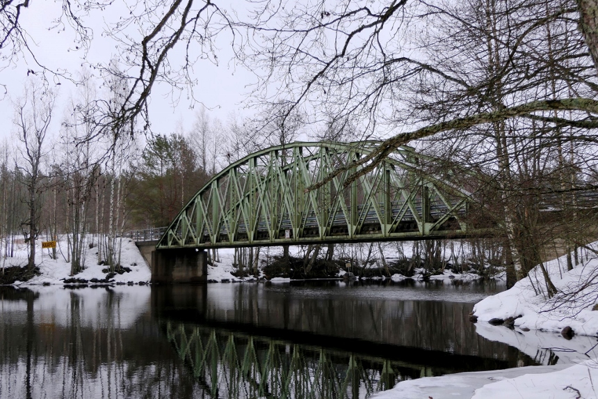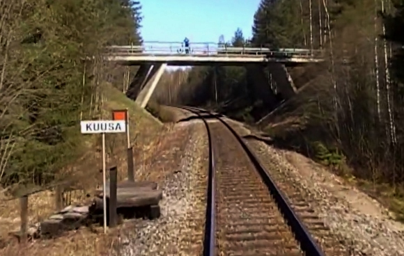 Jyrki Längman * Keitele-museon lättähattuajo v. 2011 - Kuusan pysäkkilaituri etelästä lähestyttäessä (Kuusaankosken silta), valkoinen kyltti näkyy ennen maantiesiltaa. Radan varrella-kirjassa tästä kuvan seisakelaiturista puhutaan muodossa "Museojunien seisake" * käyttölupa 2019-6-B, kiitos.
