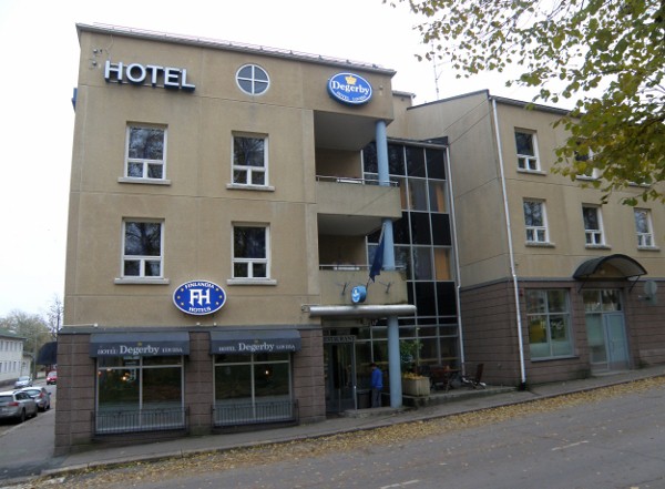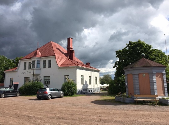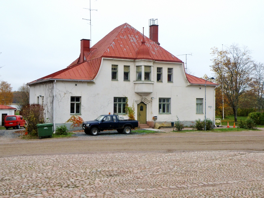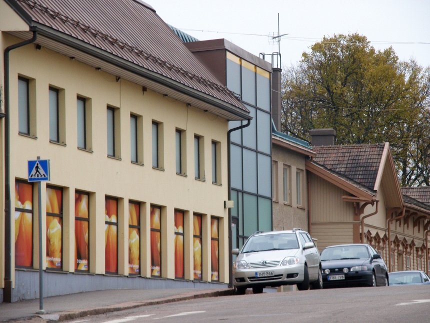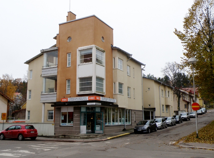 Sama rakennus kuvattuna nyt merenlahden puolelta Rantatieltä. Toiminnassa Ölvin (Olut- ja viinipuoti) - 26.10.2011 (S&J).