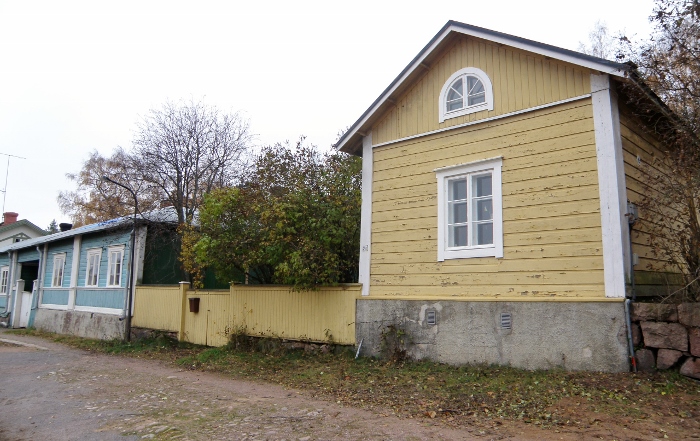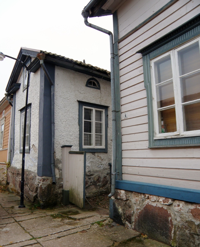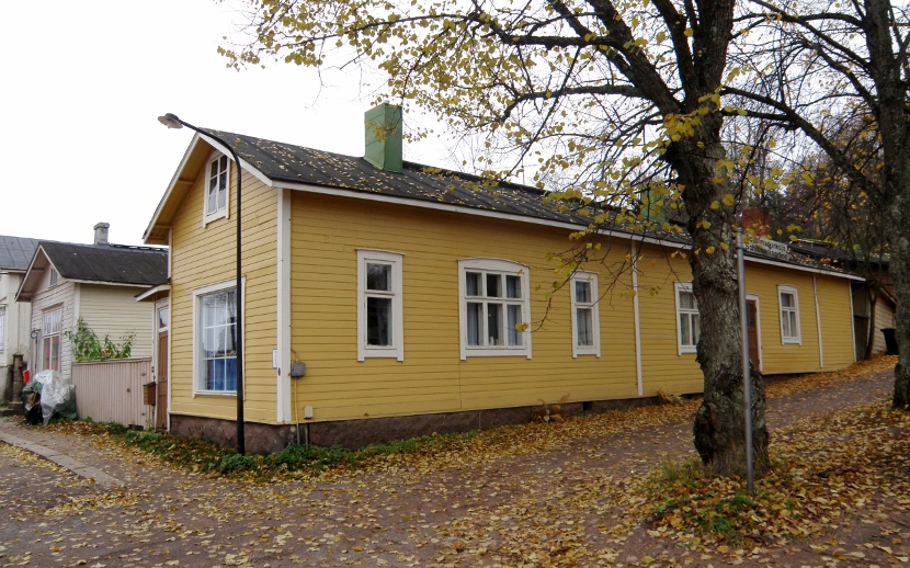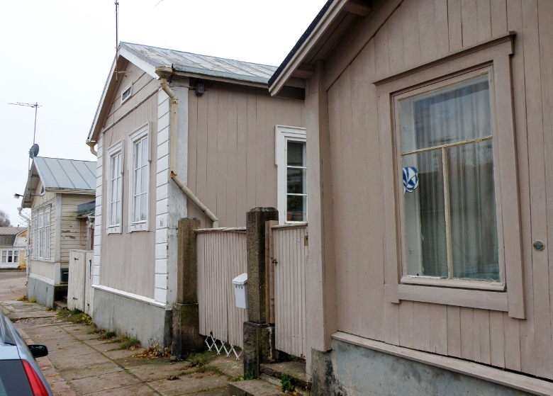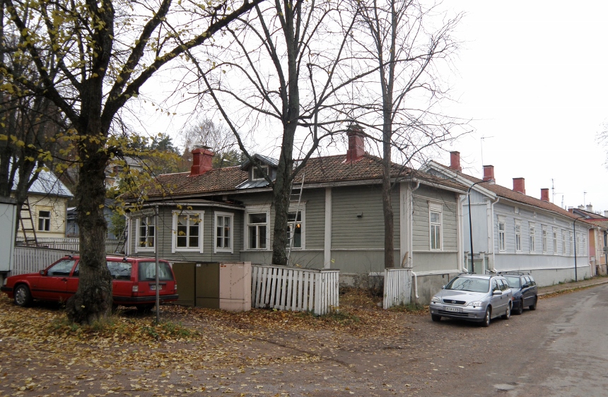 Loviisan ainoa porttitalo Suolatorin laidalla on rakennettu 1700- ja 1800-luvuilla. Tontilla on sijainnut aiemmin jopa 9 rakennusta, joissa on asunut lukuisia perheitä laivureista luotseihin. Vuosikausia vuotanut katto oli aiheuttanut mittavia vahinkoja. Karvoset ovat tehneet taloon perusteellisen uudesta katosta alkaneen täysremontin. Talon vanhempi puoli valmistui vuosi sitten perheen kodiksi. Uudempi puoli on edelleen vaiheessa: sinne tulee tekstiilitaiteilijaäidin työhuone/liiketilat sekä lisää asuinhuoneita .."