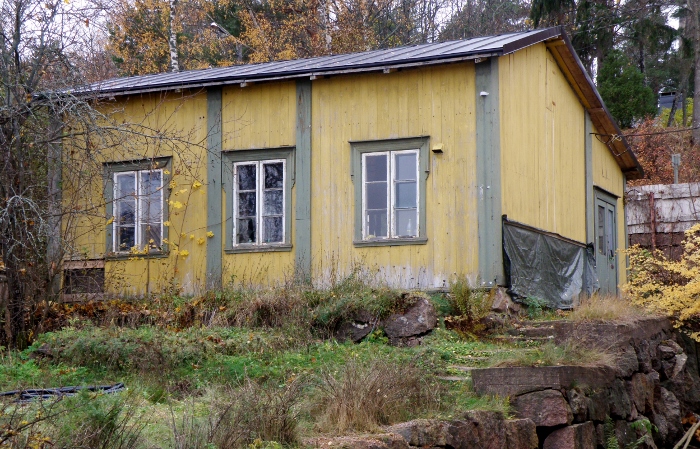 Suolatorin harjun reunalla pikkurakennus kunnostusta odottamassa - 26.10.2011 (S&J).