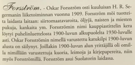 Tässä taloa käsittelevä sivu Eddie Brucen kirjasta "Kaupankäyntiä entisaikojen Loviisassa".