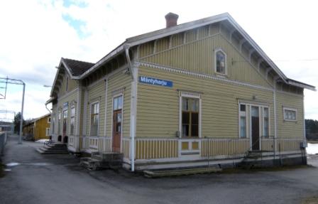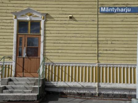 Mäntyharjun rautatieasema kuvattuna 2.5.2010 (S&J). Mäntyharju on ensimmäinen pysähdyspaikka Mikkelistä etelään Kouvolaan matkustettaessa.