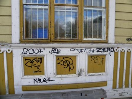Mäntyharjun aseman nuorilla odottajilla on tullut kai aika pitkäksi - tussituhrijat iskeneet töherryksillään (2.5.2010 ~ S&J).