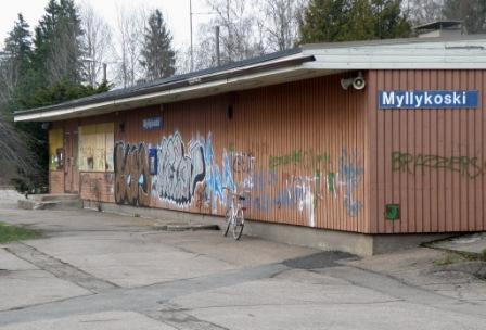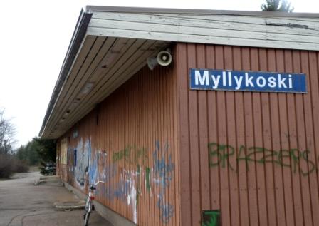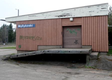 Aivan Myllykosken rautatieaseman kupeessa sijaitsee tämä jo historiallisestikin arvokas 'Matkustajakoti Rauhala', joka on yleisesti nostettu alueen nähtävyyksien joukkoon. Kuvattu 8.5.2010 (S&J).