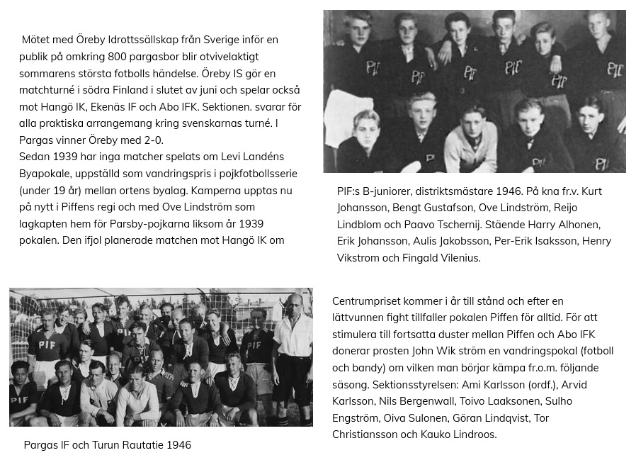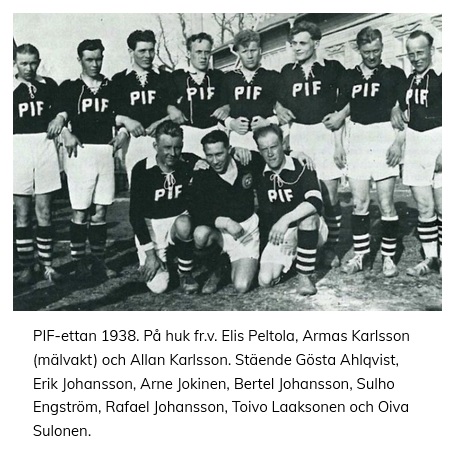 PIF: 1948 Laget rekryterar sina spelare bland följande mannar: Harry Isaksson, Toivo Laaksonen, Aarne Jokinen, John Sjöberg, Göran Lindqvist, Bertel. Johansson, Kauko Lindroos, Ingram Myhrberg. Bengt Gustafson, Åke Johansson, Per-Erik Isaks son, Hans Gestranius, Ake Gustafsson, Torsten Wahlstén, Ove Lindström och Nils Söderström.