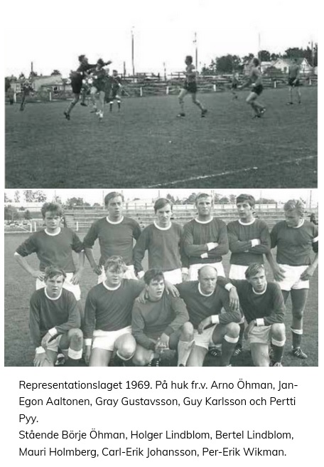 PIF * 1965 : Representationslagets kamp i kretsserien är fruktlös. Man vinner visserligen hälften av som marens matcher, men placeringen i serien blir an språkslös. Tränaren Helge Blåberg och de övrigal sektionsledarna Tor Tefke, Tor Christiansson, Bengt Gustafson, Henry Fagerholm, Erik J. Jo hansson, Henry Vikström, Guy Karlsson, Harry Henriksson och Ilmari Viitanen är rådvilla.