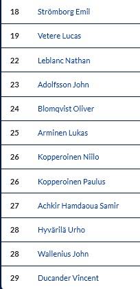 PIF * 1964 : Första laget: Guy Karlsson, Henry Vikström, Kurt. Karlsson, Bjarne Björklund, Mårten Malmlund, Erik Johansson, Tommy Lindholm, Tore Ström borg, Carl-Johan Fågelström, Timo Torssonen, Bengt Gustafson, Rainer Johansson, Ilmari Viita nen, Bror Blomqvist, Eino Blomster, Per Nyberg, Leif Blomqvist, Jyrki Jokinen, Bertel Isaksson, Per-Erik Isaksson, Jouko Takatupa, Harry Hen riksson, Kaj Talonen, Markku Talonen och Rainer Salin.