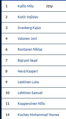 B-juniorerna (Karl-Erik. Nylund, Rolf Johansson, Rolf Lundqvist, Erik Johansson, Alf Hellsberg. Rainer Vikström, Otti Lönnroth, Helge Lehtonen, Magnus Österholm, Rainer Rosing och Urpo Sandholm).