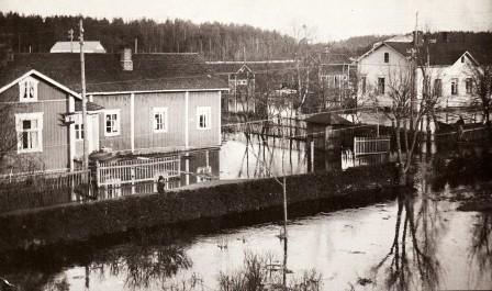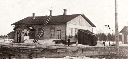 Edellisen kuvan Ratakadun kohta tulvan alla 1920-luvulla. (Perinnealbumi - om. Saara Paukku, kuvannut Pieksämäen valokuvaamo). Vauhkosen omistama matkustajakoti näkyy pensasaidan takana Ratakadun varrella. Rautatieaseman lähelle syntyi rautatieläiskasarmit. Siellä vallitsi oma sosiaalinen arvojärjestyksensä, jossa ammattinimike määräsi asunnon tason ja sijainnin.
