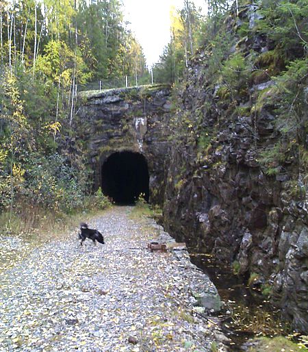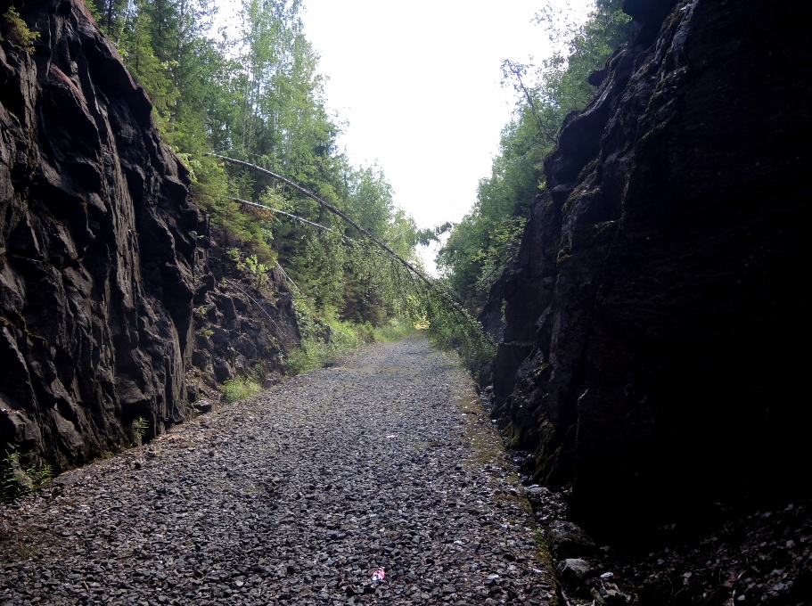 Eniten hämää se, että kiskot on poistettu, ja tunnelille vievää ratapohjaa luulee kapeaksi hiekkatieksi. Lisäksi vanha rata on tehnyt yllättävän jyrkän mutkan ennen tunnelinsuuta.