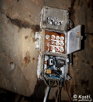 Matka jatkui ja taakse jäävä valopiste kävi aina vaan pienemmäksi, mutta etupää ei tuntunut lähenevän lainkaan. Tässä vaiheessa alkoi tehdä jo mieli kääntyä takaisin. Seinistä törrötti metallisia palkkeja, joiden päällä on ilmeisesti kulkenut johtonippuja. Tunnelissa on kuulemma ollut valotkin, mutta ne on jo poistettu. Lähellä sisäänmenoaukkoa löytyi jopa käytöstä poistettu ryhmäkeskus.