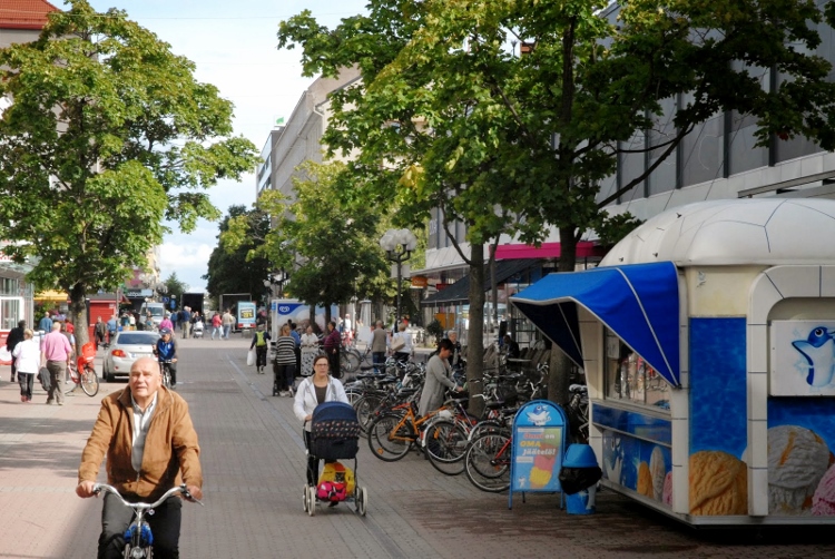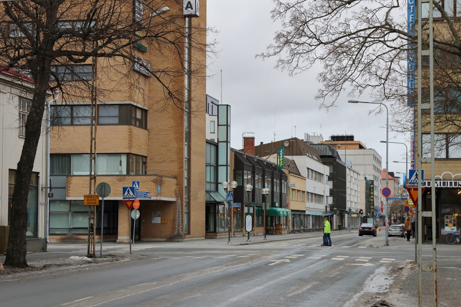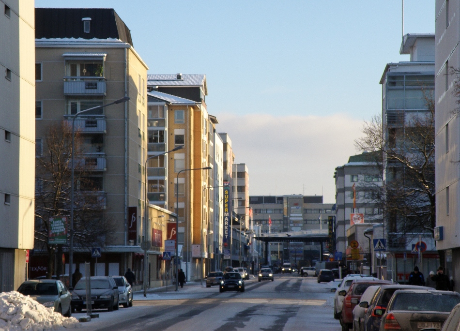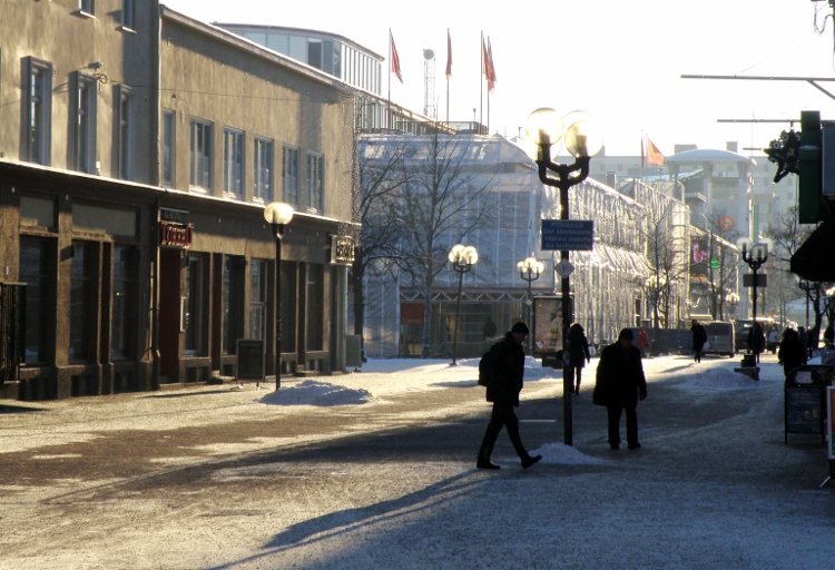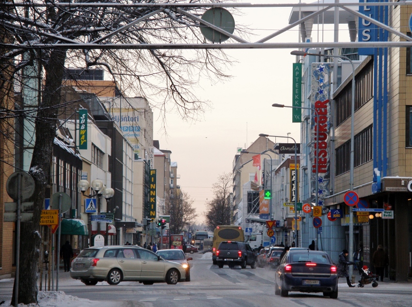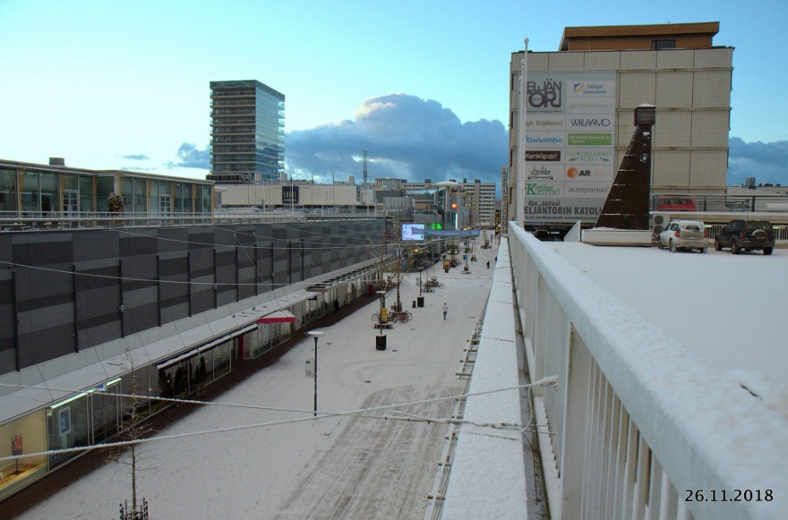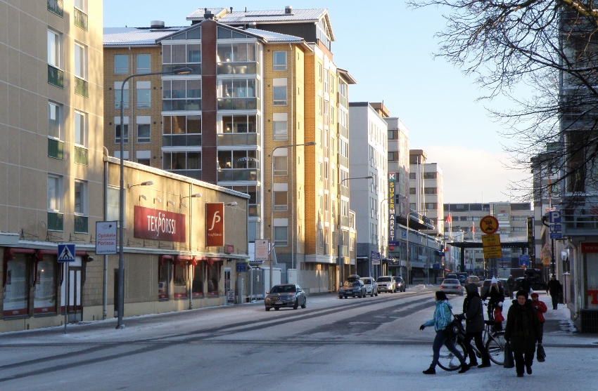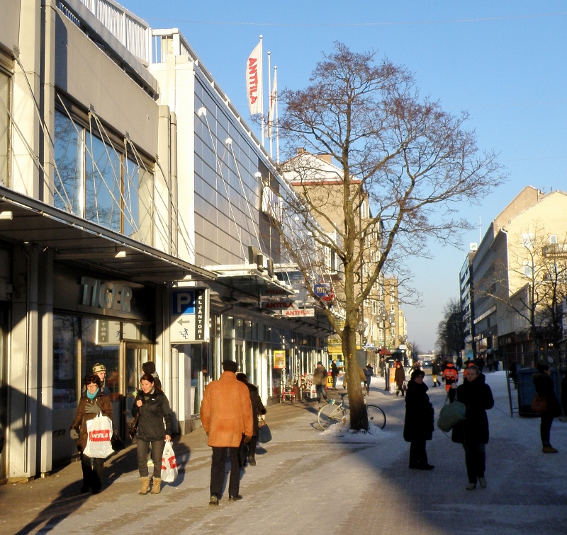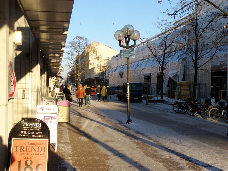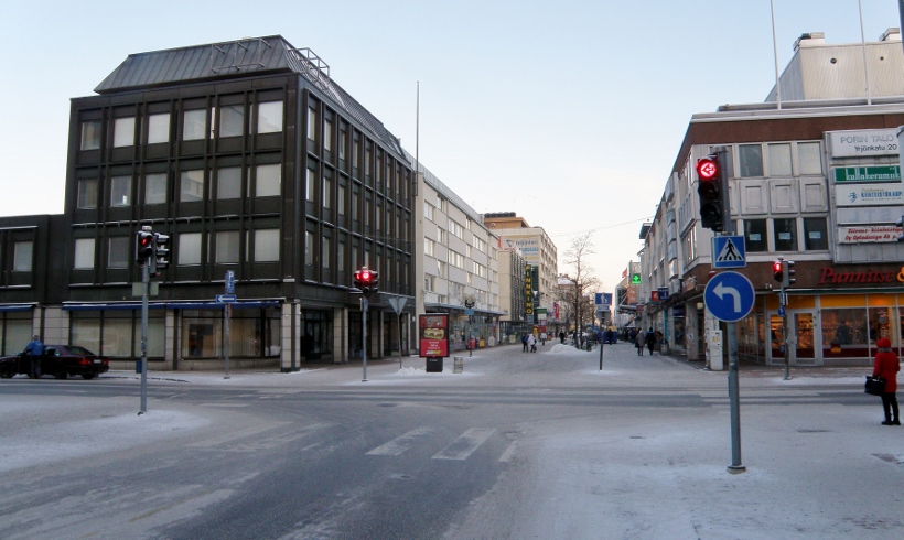 Liisankatu jatkuu Liisantorin pohjoisreunalta Eteläpuiston poikki Isolinnankadulle asti Porin nykyisessä ydinkeskustassa - kuvattu 23.1.2014 (S&J).