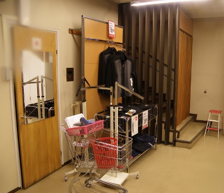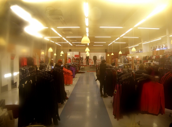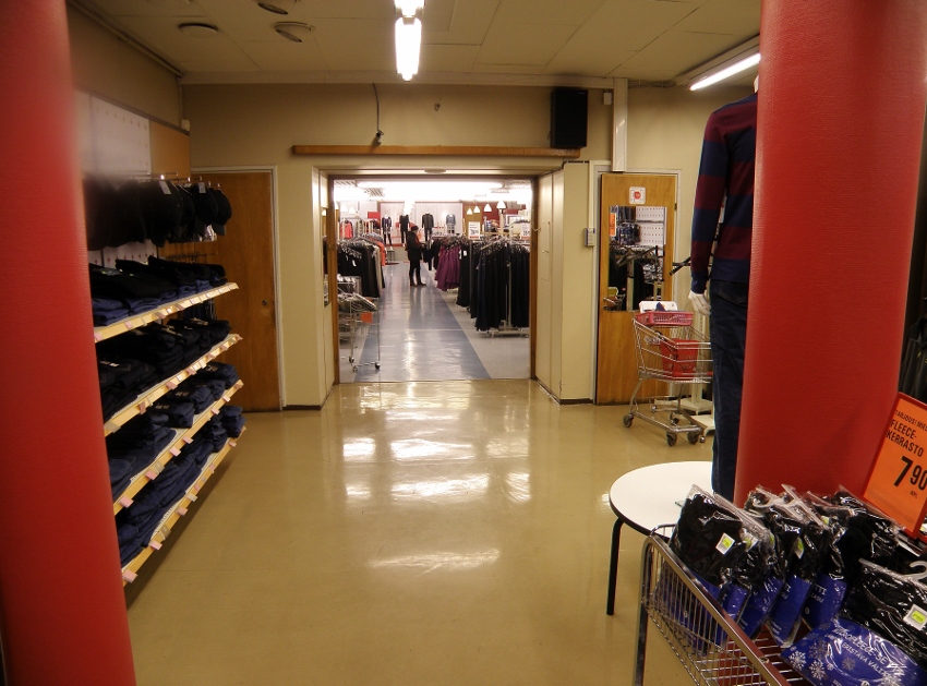Elokuvateatteri Jaarli lopetti toimintansa noin 25 vuotta sitten, jonka jälkeen sen tiloissa on toiminut tekstiililiike (nyk. nimenä TexPörssi). Tämä kuva (23.1.2014 - S&J) on otettu Jaarlin aikaisen odotusaulan puolelta, lähes lipunmyyntipaikan kohdalta. Avoimista pariovista mentiin näyttämösaliin ja valkokangas oli kuvaussuunnassa takaseinällä - nykyisten mallinukkien kohdilla. Myyjätteret kertoivat, että elokuvateatterin jäljiltä tekstiilimyymälä oli aloittanut lähes suoraan ilman ihmeempiä remontteja, mutta näyttämösalin kallistettu lattia oli jouduttu korjaamaan tasaiseksi. Myyjättären mukaan ei ole pitkällä työuralla ko. tiloissa mennyt päivääkään, ettei ainakin yhden asiakkaan suusta ole kuulunut sana Jaarli, joskin enää vain ikääntyneimmiltä - kuten minä.