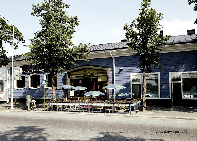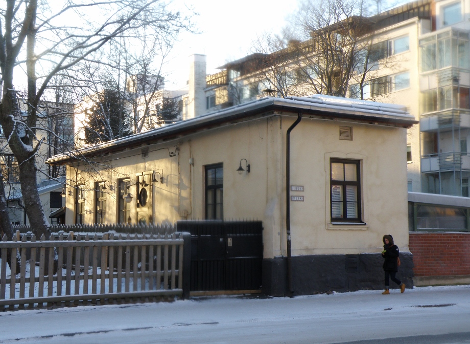 Liisankadun etelälaidalla - ent. Jaarlia melkein vastapäätä (liki Eteläpuiston risteystä siis) sijaitsee tämä melenkiintoinen rakennus, jossa muistan 80-luvulla sijainneen jonkun ruokapaikan tilojen pienuudesta huolimatta. Rakennuksen historiasta olisi mukava saada lisätietoja. Talon kulmassa kylteissä: "1896" ja "N. 12B". Kuvattu 23.1.2014 (S&J). Pihapiirissä vasemmalla kotiseutuneuvos Olavi Koskisen asuinrakennus.