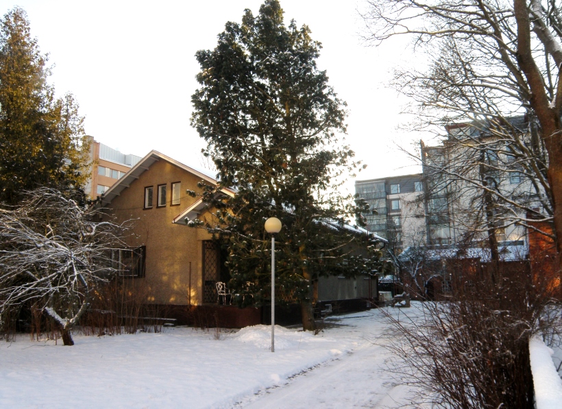 Edellisen kuvan rakennuksen itäpuolella Liisankadun eteläreunalla Eteläpuiston ja Antinkadun rajoittaman korttelin keskellä omassa rauhassaan omine pihoineen asuinrakennus, jonka historiasta myös mielellään kuulisin - kuvattu 23.1.2014 (S&J).