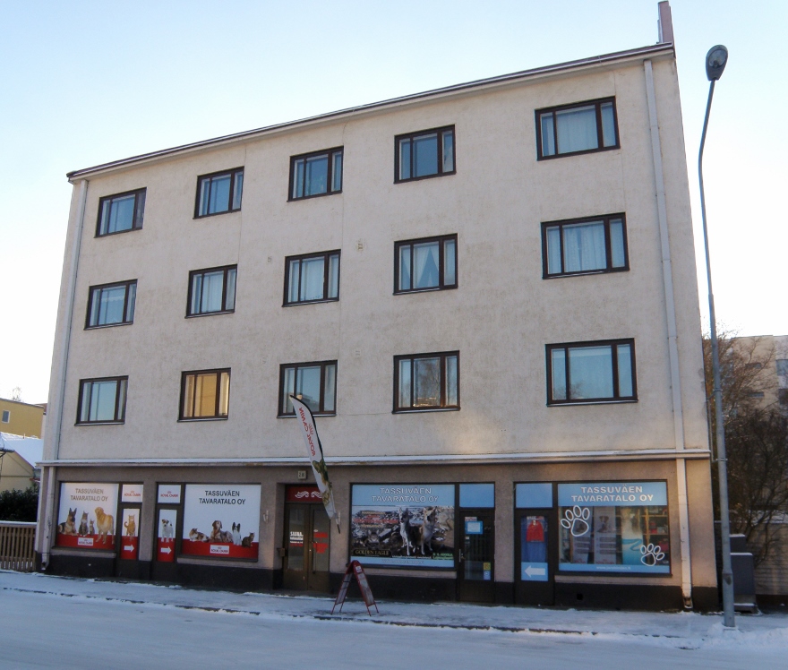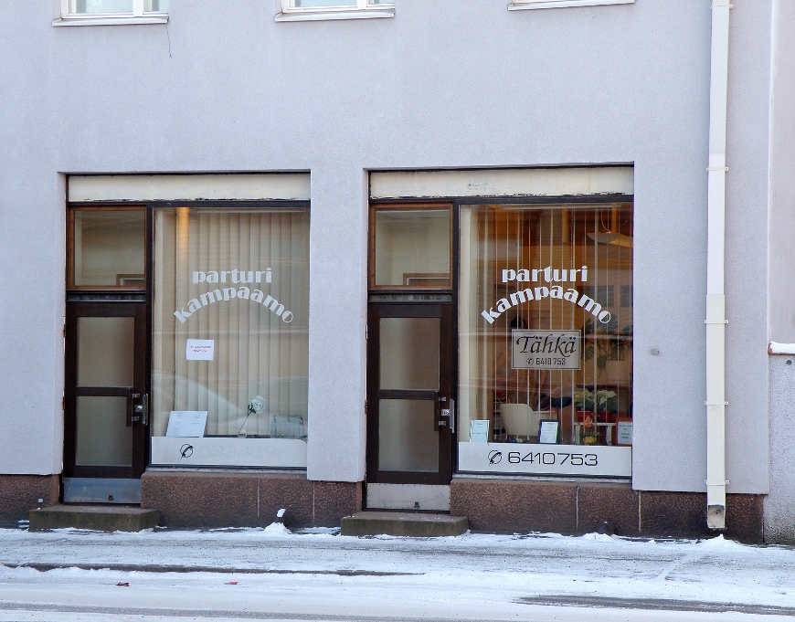 kiviportaita kuin kauppaan, suurista pariovista. Silmänsä umpeen
