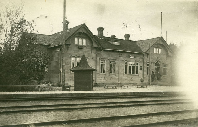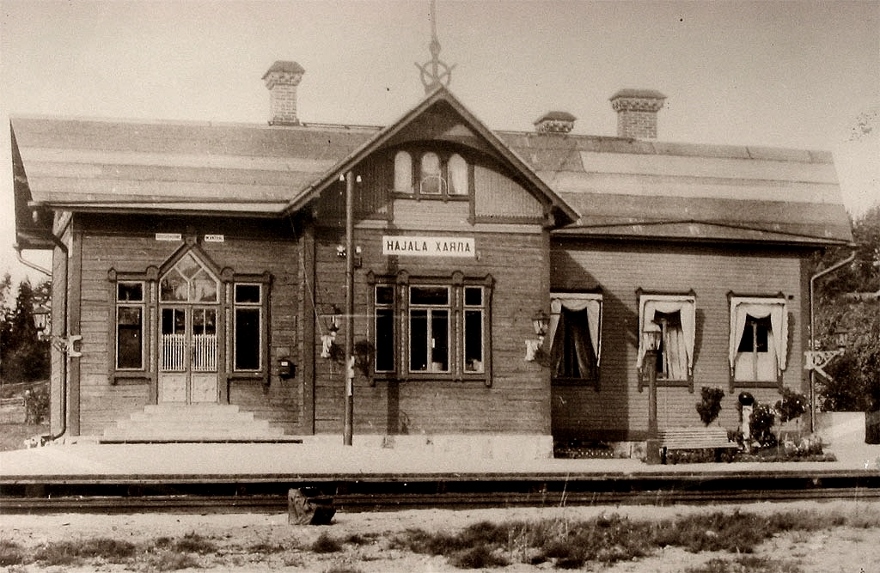 Hajalan rautatieasema (Bruno Granholm, 1904) kuvattuna v. 1906 kuvapostikortissa (kuvaajaa ei ole mainittu * public domain).