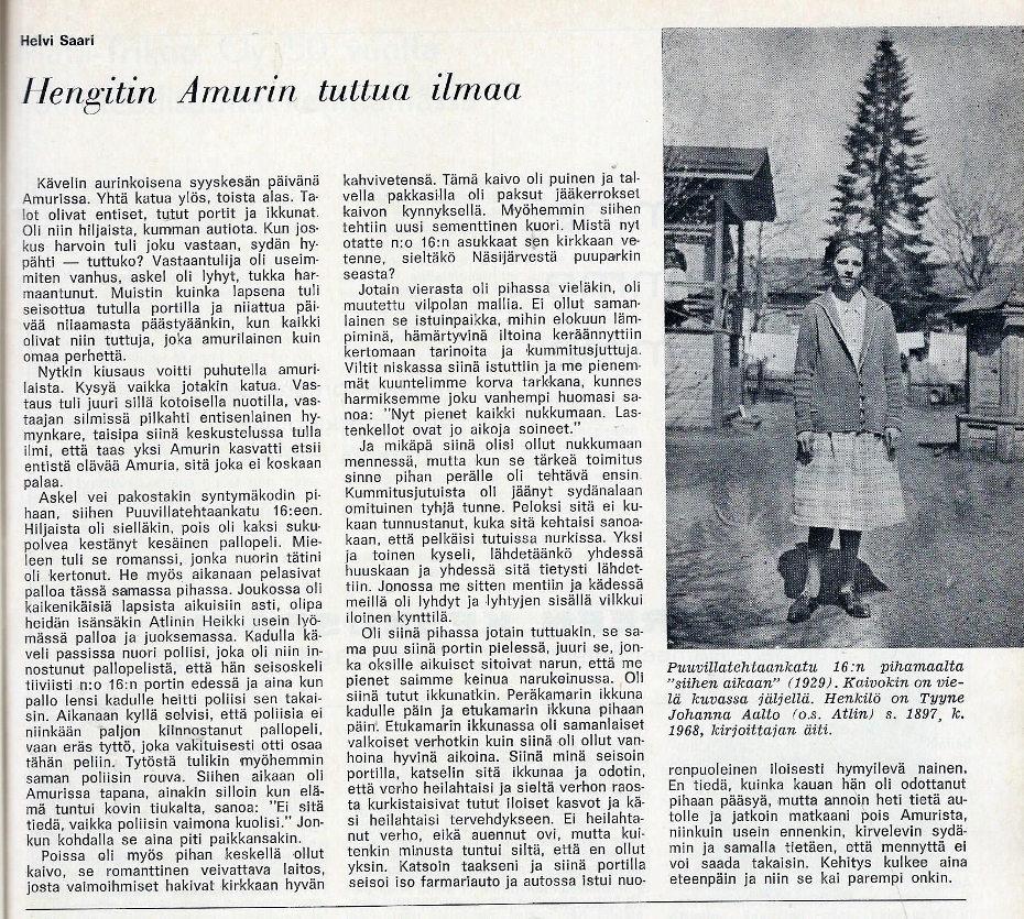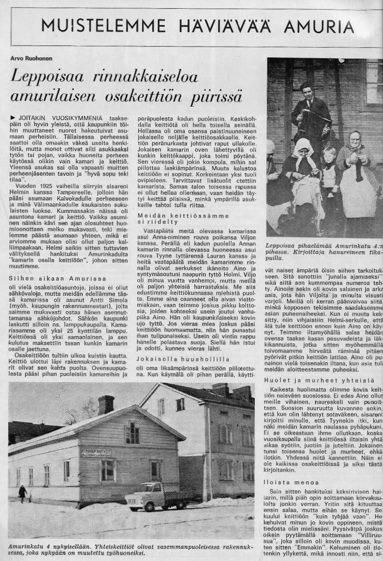 1960-luvulla Amurin puutalot purettiin ja tilalle rakennettiin kerrostaloja. Yksi kortteli säästettiin ja siitä tehtiin työläismuseo. Sen asunnot sisustettiin ajanjakson 1880-1970 eri aikakausien työläisasuntojen näköisiksi.