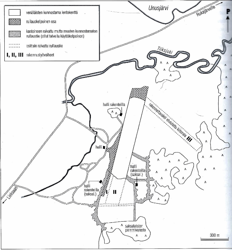 Venäläisten toimesta oli Tiiksjärven eteläpuoliselle alueelle n. 30km länteen Ontrosenvaarasta, alustavasti raivattu 700 metriä pitkä kiitoalue, leveydeltään satakunta metriä.