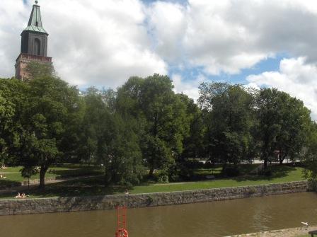Turun tuomiokirkko - Aurajoen rantaa Aninkaistenkadun siltaa idempää - 1.7.2010 (S&J).