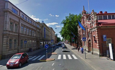 Turun tuomiokirkko ja Aurajoki - Aninkaistenkadun silta ~ 1.7.2010 (S&J). Sillan jälkeen (kuvasta oikealle kaakkoon) kadun nimi muuttuukin pian Uudenmaankaduksi.