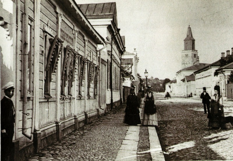Raitiovaunu Aurajoen ylittävällä sillalla 1930-luvun postikortissa - tarkemmat tiedot puuttuvat. Silta nimeltään Auransilta, jatkeena etelänpuolen Kaskenkadulle. Lähetti 'RT' (13.5.2011).
