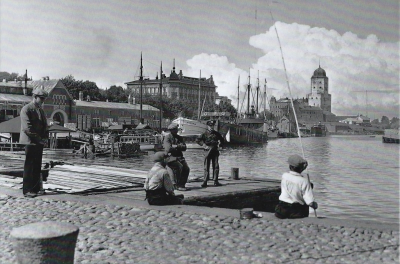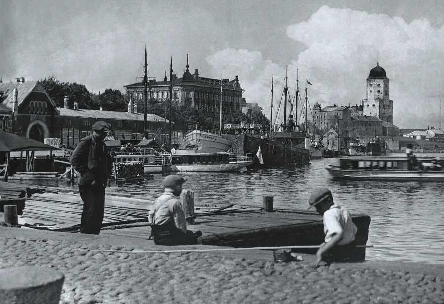 Eino Partasen ottama leppoisa vapaa-ajan viettokuva 1930-luvun Viipurista. Salakkalahden sisäsataman laitureihin kiinnittyi monenlaisia aluksia - niin matkustajahöyrylaivoja kuin myös Saimaan tervahöyryjä eli pikinytkyjä. Viipurilaiskirjailija Lempi Jääskeläiselle 'tervanhaju alhaalta satamasta' oli alkavan kesän merkki. Sama kuva julkaistiin v. 2011 Antero Raevuoren kirjassa 'Hyvästi, Viipuri' ja v. 2010 kirjassa 'Kävelyretkiä 1930-luvun Viipurissa'.