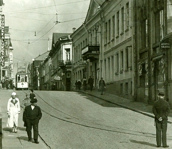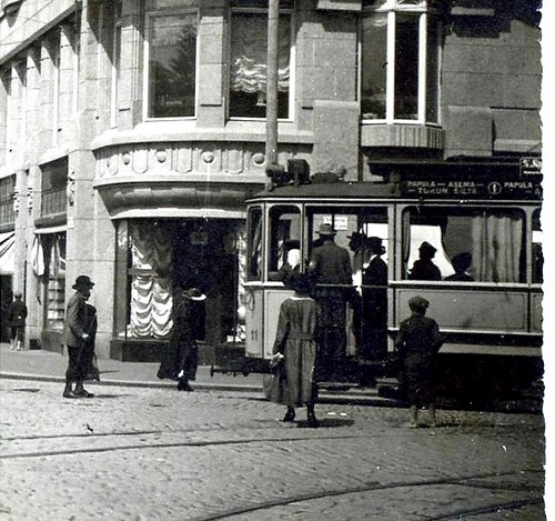 A) Raitiovaunu Linnankadulla Viipurissa 1930-luvulla. RT lähetti 13.2.2010.