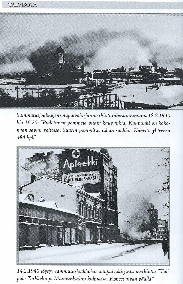 (C.Henning, 2011): Vasemmassa alanurkassa näkyy kulmaus Raatihuoneesta eli kaupungintalosta Uno Ullbergin uudistamassa muodossa, eli kuva on otettu vuoden 1934 jälkeen. Keskikesäisenä iltapäivänä tai mieluummin sunnuntaina puolilta päivin (Kauppatorilla ei ole kaupankäyntiä, aurinko paistaa etelän ja lounaan väliltä). Saattaisi olla Karhumäen veljesten lentokuvia (numero?), mutta aika matalalla olisi silloin menty, ja ylen syvätarkka on kuva.