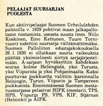 Kun Suomessa kaudella 1930 jalkapallossa aloitettiin ensimmäinen kahdeksan joukkueen (yksinkertainen sarja), SPL nimesi yhden paikan Viipurille. Reippaan näppien edestä tuon uuden 'A-sarjan' paikan nappasikin juuri ViPS ja B-sarjastakin nousi pääsarjatasolle kaudella 1930 Viipurin Sudet.