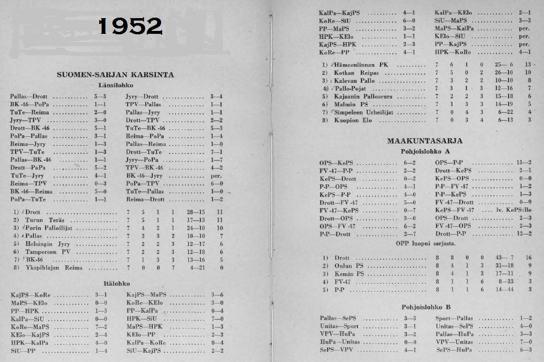 Suomensarjan kausi 1952 oli Suomen toiseksi korkein sarjataso Suomessa kaudella 1952. Sarjassa pelasivat Palloliiton ja Työväen Urheiluliiton joukkueet yhdessä. Yhteistoiminta käsitti kaksi ylintä sarjatasoa sekä karsinnat Suomensarjaan. Lohkovoittajat nousivat seuraavaksi kaudeksi mestaruussarjaan ja kummankin lohkon 2 viimeistä putosi maakuntasarjaan tai TUL:n suursarjaan.
