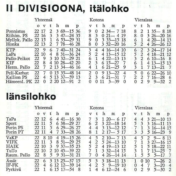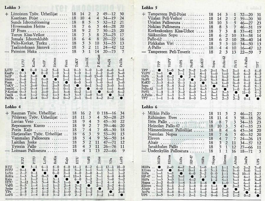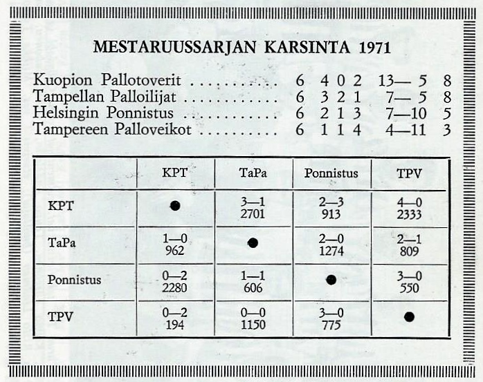 Mestari 1971: TPS, hopeaa: HIFK , pronssia: KPV.
