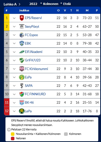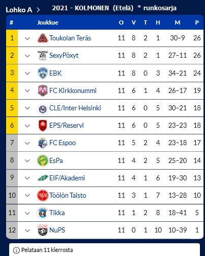 EIF/Akademi ~ 12. peräkkäinen kausi Kolmosessa ~ sijoitus: 6/12.