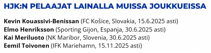 (4.5.2025): HJK antoi potkut Toni Korkeakunnakselle -