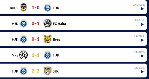 HJK on pelannut Veikkausliigassa viisi ottelua, joista se on kerännyt vain neljä pistettä. Lauantaina suurseura jäi Interiä vastaan 1–1-tasapeliin.