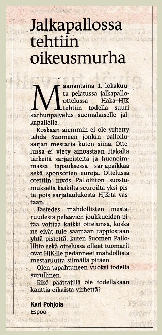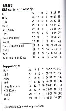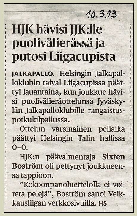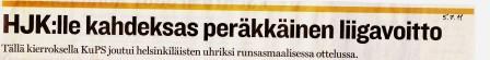 HJK jäi Veikkausliigassa (loppusarjan jälkeen) viidenneksi (KuPS mestari).