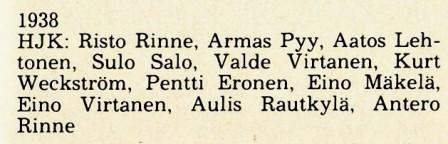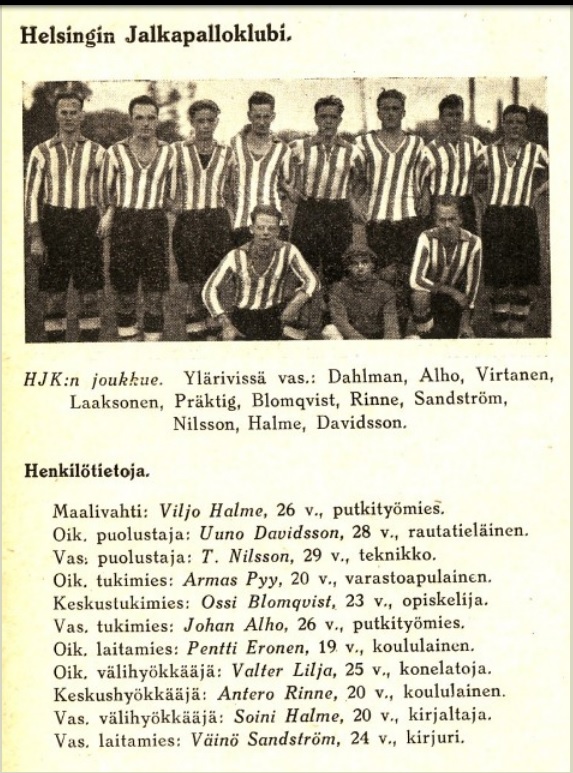 (HJK * 18.8.2019): (mv) Maksim Rudakov, Henri Toivomäki (Rafinha), Daniel O'Shaugnessy, Faith Friday Obilor, Viktor Luiz (Eetu Vertainen), Sebastian Dahlstöm, Evans Mensah. Santeri Väänänen, Petteri Forsell, Sekou Camara (Tim Väyrynen) ja Riku Riski. Vaihdossa: (mv) Markus Uusitalo, Erfan Zeneli, William Parra Sinistera ja Roni Peiponen. Maali: Väyrynen. Päävalmentaja: Toni Koskela.