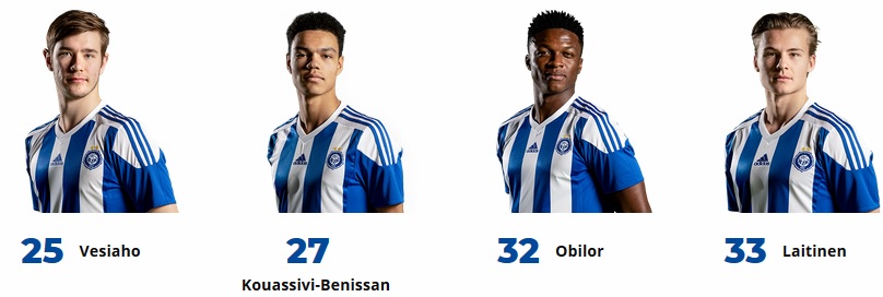 Puolustajat: Henri Toivomäki, Rafinha, Faith Friday Obilor, Nikolai Alho, Roni Peiponen, Daniel O'Shaugnessy, Kevin Kouassivi-Benissan ja Valtteri Vesiaho.