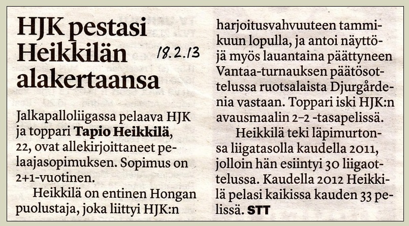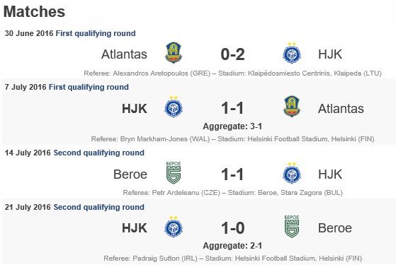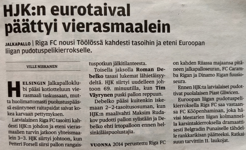 Euroliigan karsinnat: 3. kierros: (6.8.2019 ~ 1st leg) Riga FC, Latvia-HJK 1-1 * (31.7.2019 ~ 2nd leg) HJK-Riga FC 2-2 * Riga FC jatkoon yhteismaalein 3-3 - vierasmaalisäännöllä.