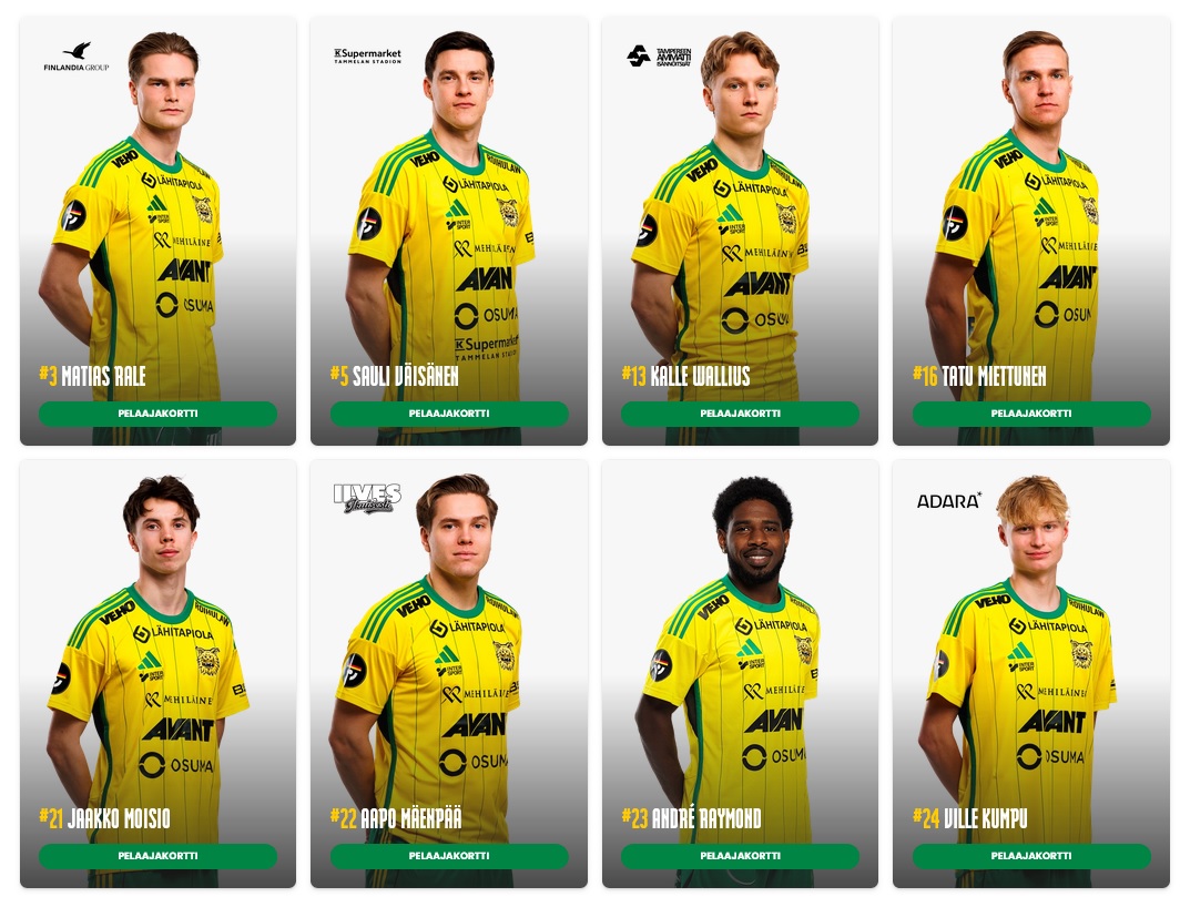 (Ilves, 23.6.2020): (mv) Mika Hilander - Diego Thomas, Janne Saksela, Tatu Miettunen, Tuure Mäntynen (Felipe Aspegren), Iiro Järvinen (Tuure Siira), Silva Jair, Joona Veteli, Paul Tendeng (Eero Tamminen), Lauri Ala-Myllymäki ja Tiemoko Fofana (Eetu Mömmö). Vaihdossa: (mv) Matias Riikonen, Eemeli Raittinen, Baba Mensah. Päävalmentaja: Jarkko Wiss.