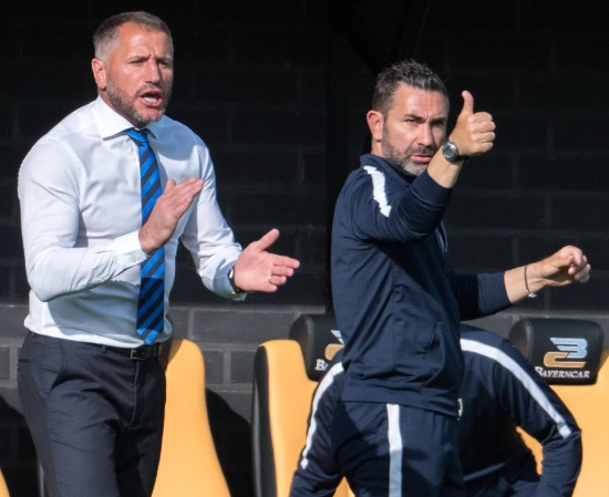 FC Interin valmentaja Job Dragtsma seuraa tarkasti Timo Furuholmin valmistautumista KuPS-peliin - 9.9.2011 (S&J).