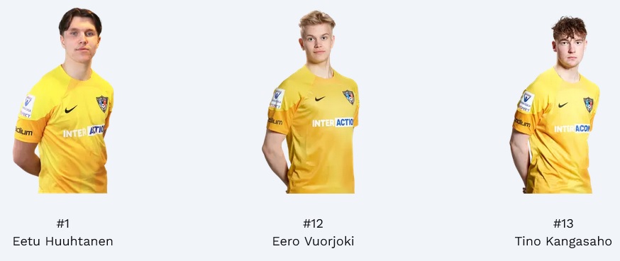Vaihtopenkille jäivät: (mv) Tino Kangasnaho, Bart Straatman, Otto Eloluoto, Sami Sipola ja Väinö Vehkonen. Päävalmentaja: Vesa Vasara.