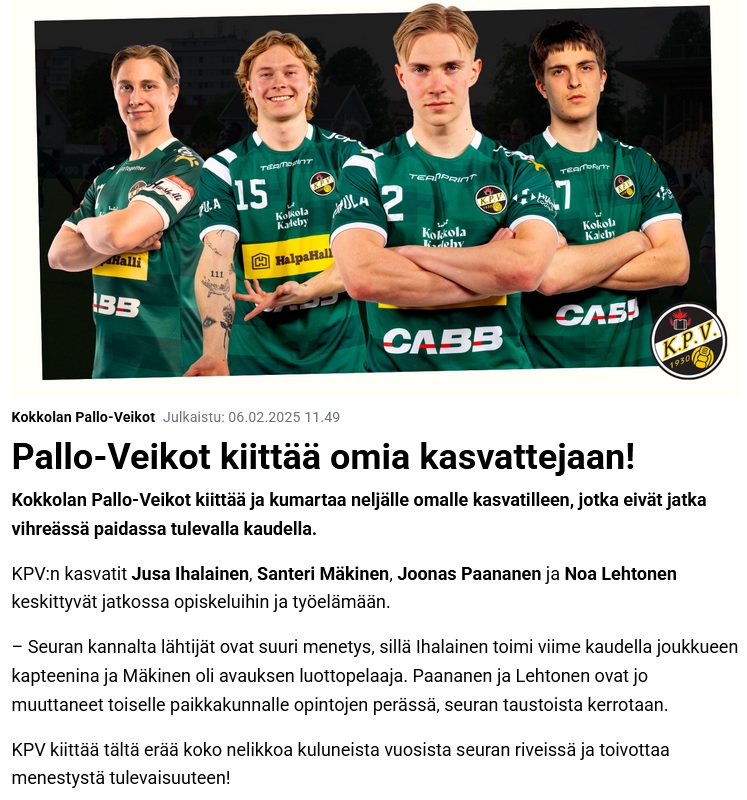 KPV-Akatemia - toinen peräkkäinen kausi Kolmosessa.