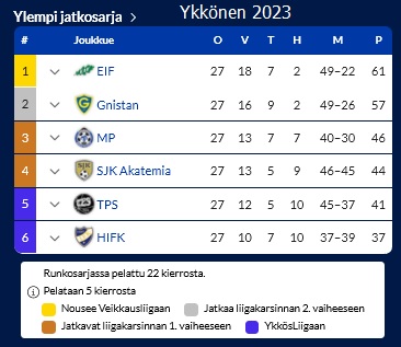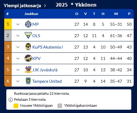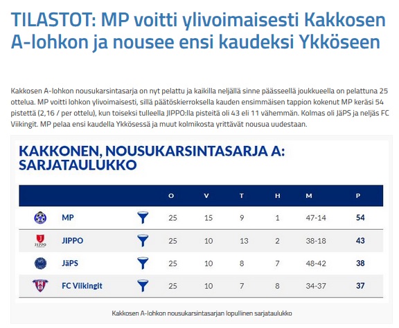 MP ~ nousijana Ykkösessä ~ jäi sarjassa viimeiseksi (14/14) ja putosi kolisten suoraan takaisin Kakkoseen.